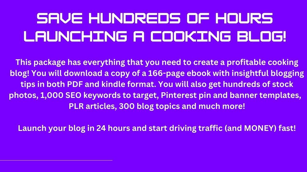Ultimate Cooking Blogger Kit -Generate Cash in No time with a Cooking Blog - 10 Sets of Products in 1 Bundle!